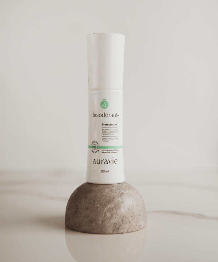 O Desodorante Spray Auravie oferece proteção natural eficaz sem bloquear a transpiração ou agredir a microbiota da pele. Com prebióticos, enzimas vegetais e citrato de prata, ele neutraliza o mau odor de forma inteligente, preservando o equilíbrio da pele.