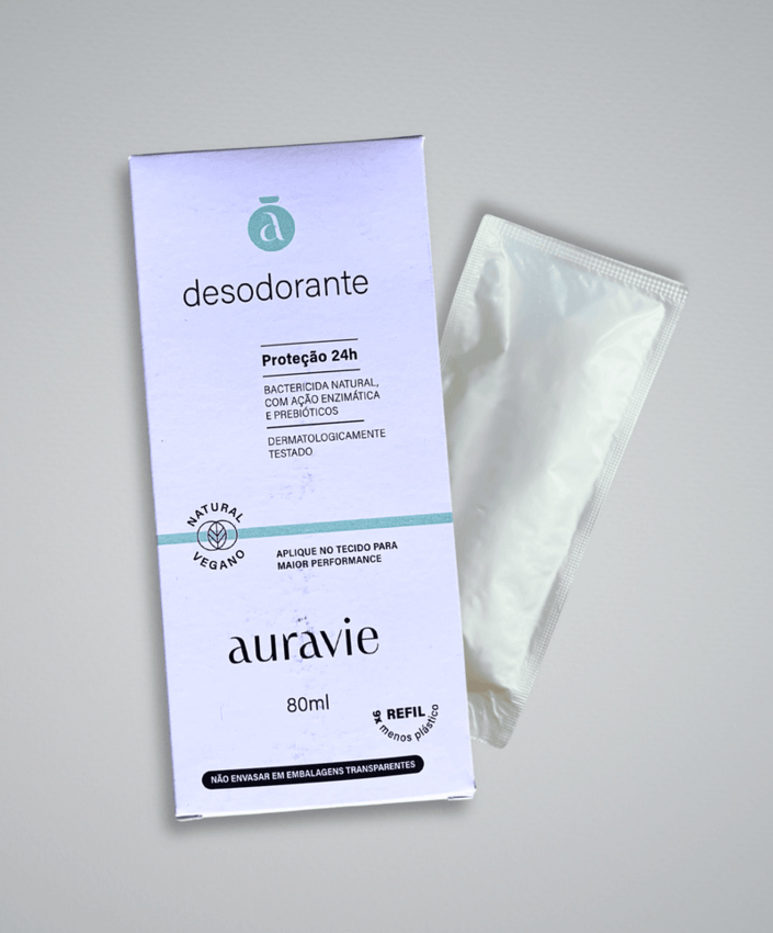O Refil do Desodorante Spray Auravie mantém a mesma fórmula eficaz do produto original, oferecendo proteção natural contra odores sem bloquear a transpiração ou comprometer a microbiota da pele. Com prebióticos, enzimas vegetais e citrato de prata, ele neutraliza o mau odor de forma inteligente e segura.