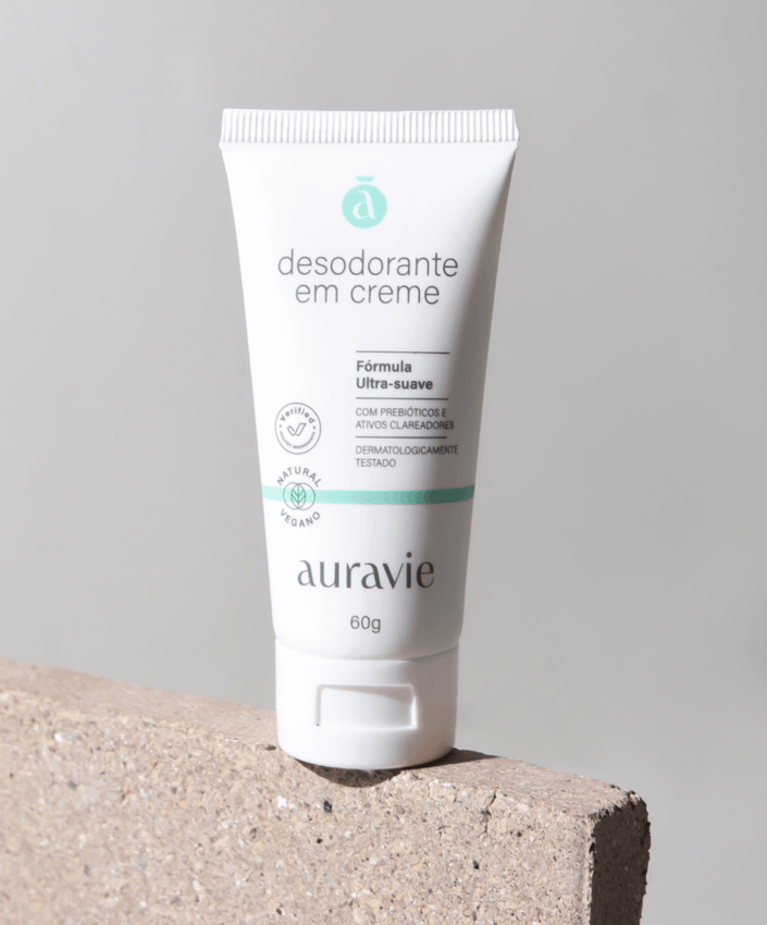 O Desodorante em Creme Auravie é uma solução natural e eficaz para quem busca proteção duradoura sem agredir a pele. Sua fórmula ultra-suave combina ativos clareadores, prebióticos e ingredientes calmantes que controlam o mau odor sem bloquear os poros ou interferir na microbiota natural.